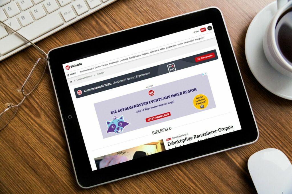 Bannerwerbung sind klickbare digitale Bildanzeigen mit Textelementen, die wir auf nw.de, westfalen-blatt.de, mt.de, lz.de und haller-kreisblatt.de platzieren. So sind Ihre Botschaften auf allen wichtigen Nachrichtenseiten OWLs präsent. Fotos, Texte und kleine Animationen verbessern die Markenbekanntheit und liefern messbare Performance im Online Marketing.